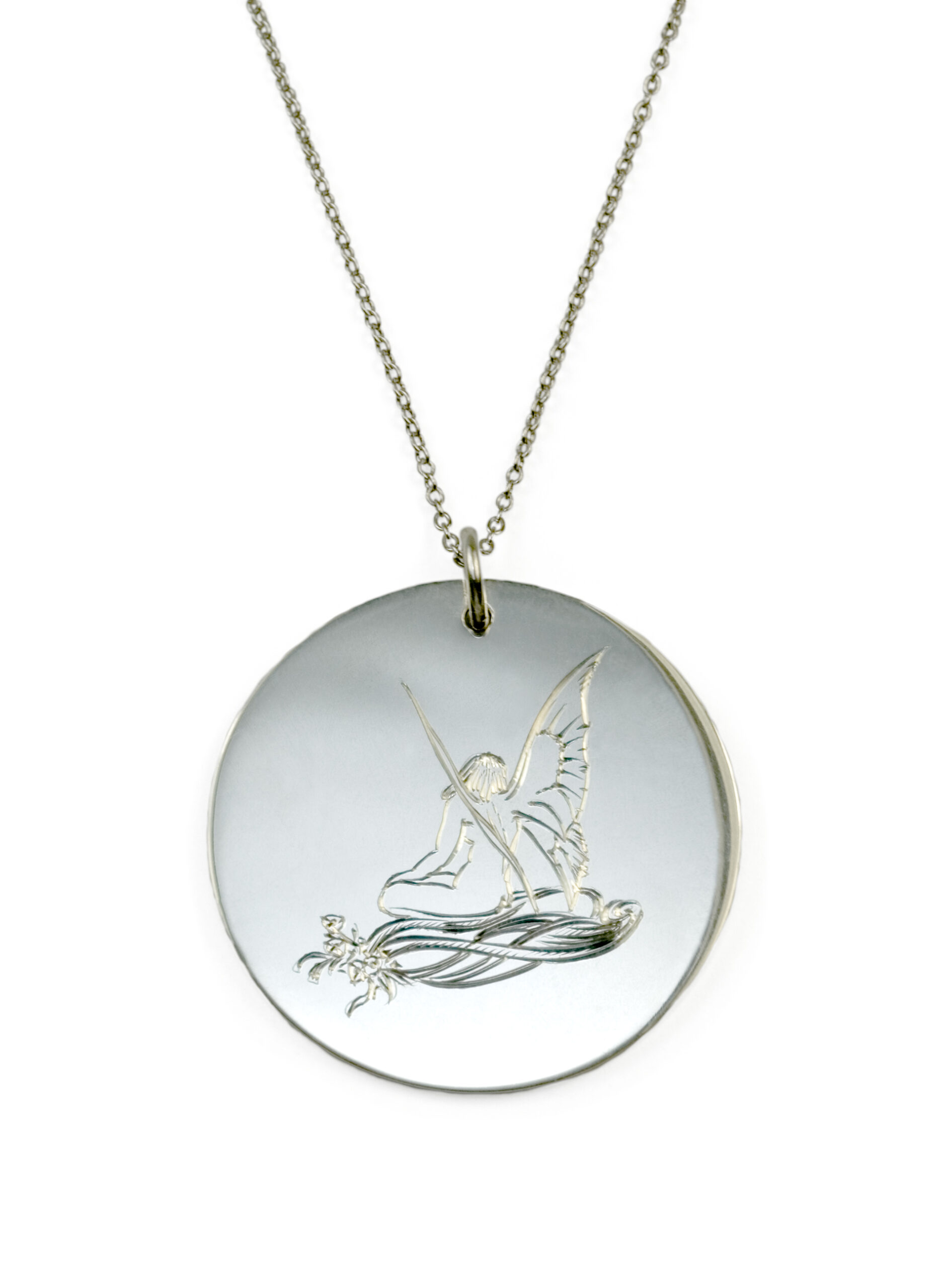 Engraved fairy disk necklace