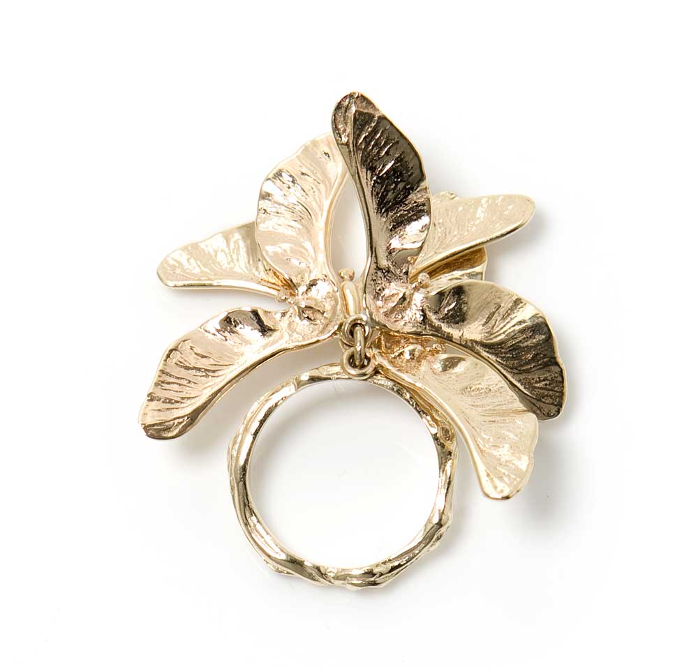 This multi sycamore pod ring is cast from life. It is made from 9ct yellow gold (also available in silver).